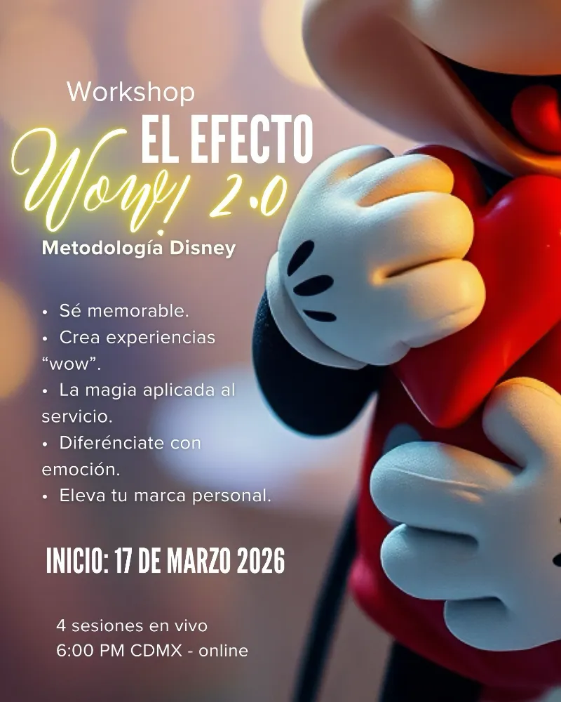 Efecto Wow 2.0 es la formación que traduce esa metodología al mundo profesional actual: para organizaciones, equipos, emprendedores y personas que ofrecen un producto o servicio y quieren generar experiencias que se recuerdan, se recomiendan y se eligen.